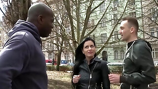 Sweet Sophia gets her asshole stretched by a huge black cock in strong bi-racial action.