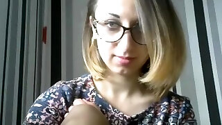 She is a charming babe with glasses and showcases off her intimate parts