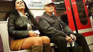 Sexy blonde MILF in miniskirt pantyhose let us see her thong and her butt !