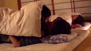 Pretty brnette seduced by an old man next to her sleeping hotwife BF