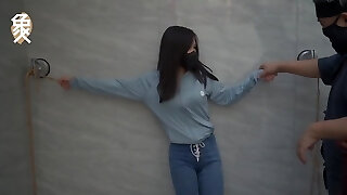 Asian stunner gets ball gagged and fucked rough with some instruments