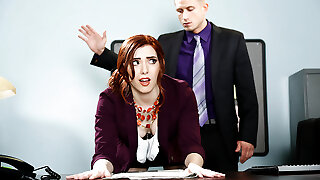 Redhead dominatrix with a strap-on porks the hot chocolate beauty