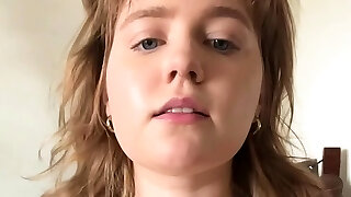 长长的头发和害羞的女孩想闪烁她的shagging能力的相机