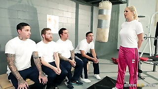 火热的Nici白金-金发女郎被手指和捣在健身房