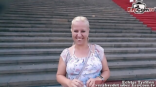 德国丑陋的灰金发碧眼的家庭主妇teenie拿起