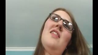 他妈的丑陋的四个眼睛的小妞表示她的小奶子免费的