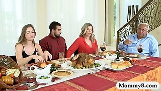 Stepmom Cory Chase fucking with teen couple after dinner