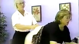 eine milf fickt eine studentin mit einem strap-on, während sie ihren hintern schlägt