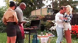 barbecue soiree verwandelt sich in eine geschmolzene gruppe bang mit atemberaubenden rohr gierig bi-otchen