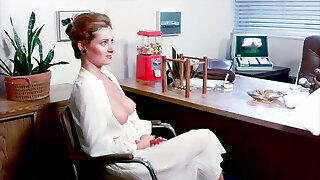 langbeinige sekretärin in kurzen mini-rock sophia delane nimmt unterhosen im büro