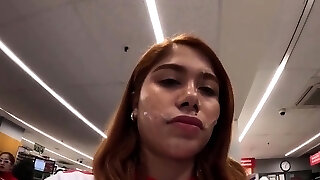 Cute teen babe get facial cumshot after blowjob and hard pulverizing li