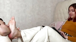 Gobbling Girls Feet - VALERIA - Having fun with a slave girl