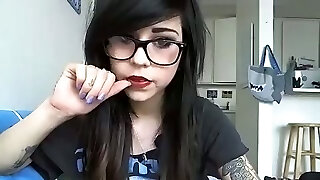 meraviglioso punk slut in calze al ginocchio è vibing il suo twat con il suo vibro vibratore