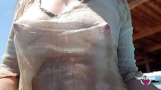 nippleringlover folle cougar guardare attraverso bagnato t-shirt in piscina lucchetti in straordinaria trafitto puffies