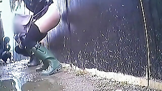 signora cinese in tacchi pissing catturato sulla macchina fotografica
