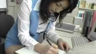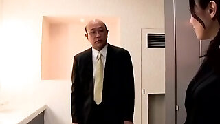Japanese office female gets fucked by two