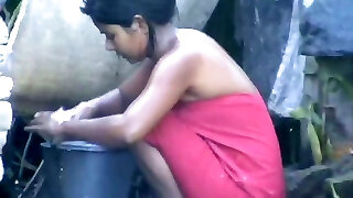 wow... impressive desi village gal bathing outside