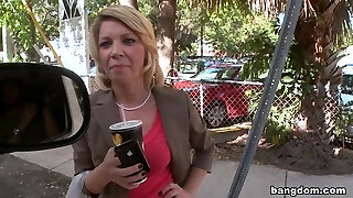 Busty blonde Milf gonna buy some water but finishes up fucking in the van