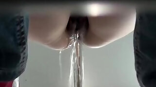 Teen with shaved pussy snooped pissing