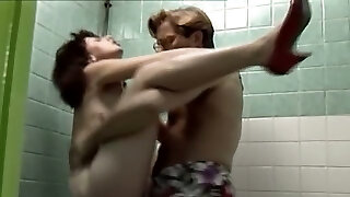 A teacher takes his super-hot, goth student into the douche and fucks her