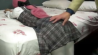Colegiala siendo castigada por su mal comportamiento y al final le encanta