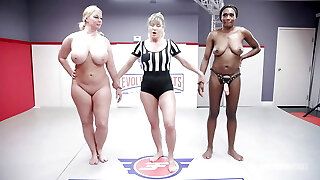 Ebony babes battle in 100% real competitive erotic wrestling match
